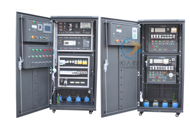 1.本裝置采用標(biāo)準(zhǔn)配電柜為主體柜,充分利用該柜雙面空間位置,其中裝有可方便拆卸的電源控制、交直流電源、測量儀表、低壓電氣器件,另一面裝有PLC模擬量模塊、變頻器、直流調(diào)速模塊、機床智能考核,該配電柜占地面積小,外形美觀;2.電氣控制線路元器件都裝在電氣柜內(nèi)部,配有布線槽、接線端子;通過端子學(xué)生可自行接線、布線,構(gòu)建控制系統(tǒng),實訓(xùn)特點明顯,同時具有一定的擴展性;