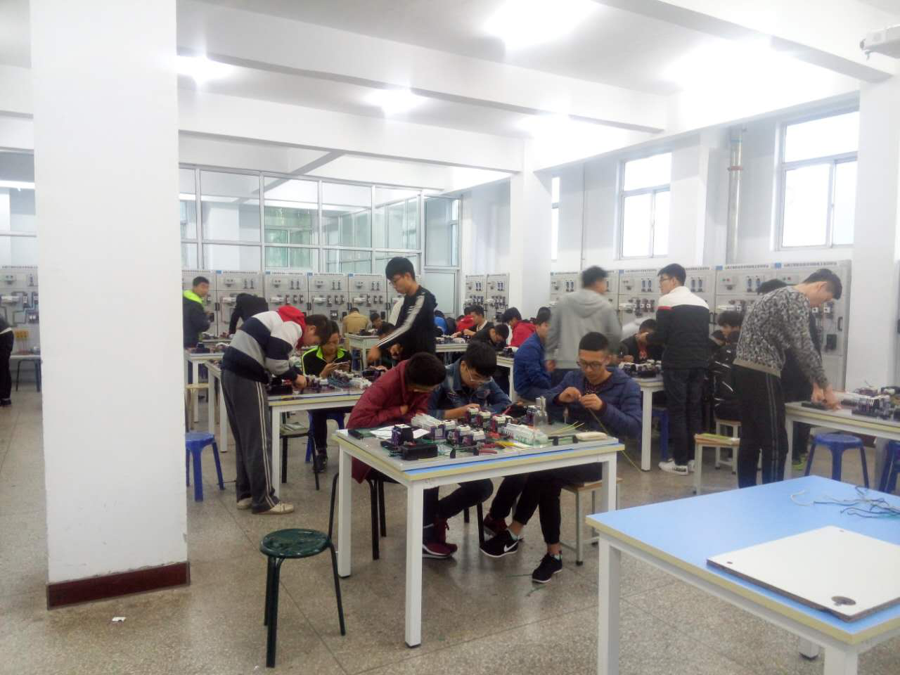 電機(jī)控制實(shí)訓(xùn)主要承擔(dān)我院電氣自動(dòng)化技術(shù)專業(yè)《電機(jī)應(yīng)用與維修》《低壓電氣設(shè)備使用與維護(hù)》和機(jī)械制造專業(yè)、機(jī)電一體化技術(shù)專業(yè)《電工電子技術(shù)》課程實(shí)驗(yàn)實(shí)訓(xùn)教學(xué)任務(wù)。培養(yǎng)學(xué)生掌握電氣元件的布局、安裝、布線等動(dòng)手能力和操作技能,掌握電工技能、電氣設(shè)備安裝與維修的專業(yè)知識(shí)和技能,掌握工作過程的知識(shí)以及形成電氣職業(yè)崗位的職業(yè)能力。也是初級(jí)、中級(jí)及高級(jí)維修電工技能培訓(xùn)和考核的場(chǎng)所。