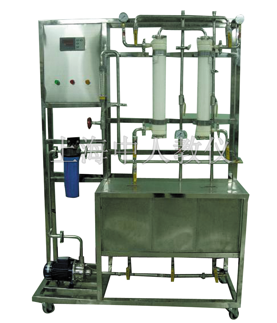 超濾膜分離實驗裝置,超濾膜分離實驗臺主要配置 配液池、濾液池、水泵、超濾組件、壓力表、液體流量計、管道、閥門、不銹鋼框架及儀表控制柜。