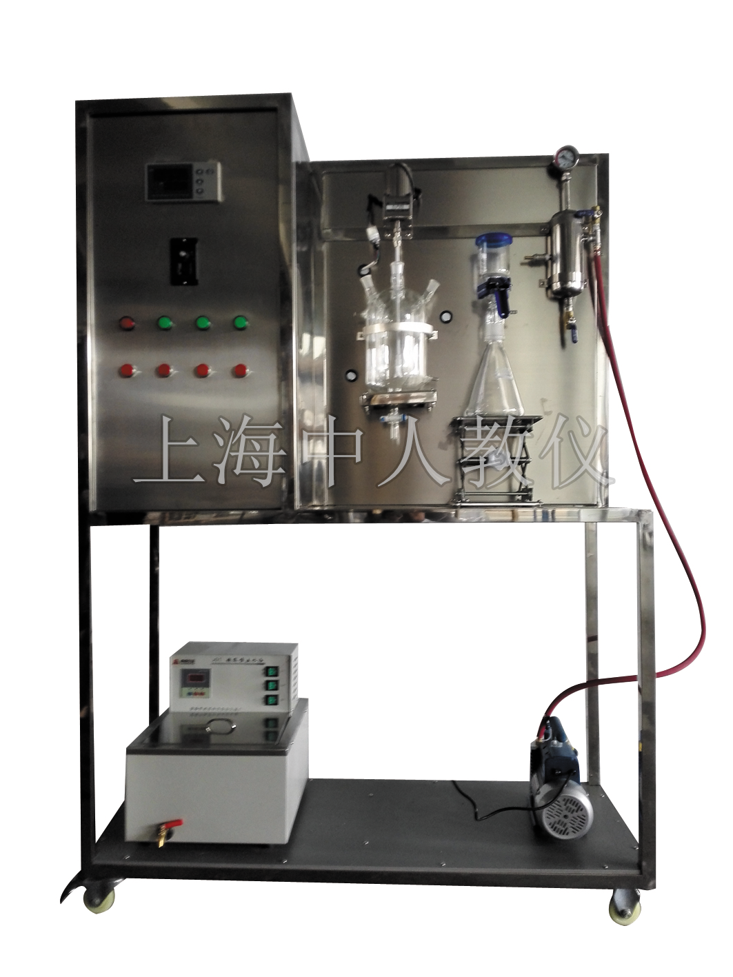結(jié)晶實(shí)驗(yàn)裝置,結(jié)晶實(shí)訓(xùn)裝置主要配置 攪拌電機(jī)、恒溫槽、循環(huán)泵、溫度傳感器、溫度控制儀、玻璃反應(yīng)釜、過濾漏斗、緩沖罐、真空泵、接料瓶、不銹鋼框架及儀表控制柜。