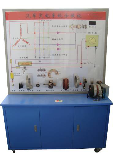 本產品選用汽車充電系統實物,展示汽車充電系統的結構與原理;電機驅動模擬發動機運轉,示教板可產生自行充電,示教板上部還對發電機進行解剖、了解發電機的基本構造,面板上繪有完整的充電系統的電路圖,設置有檢測端子,可通過儀器儀表檢測各種信號參數如電壓、電阻、頻率等。本示教板功能齊全、操作方便、安全可靠。