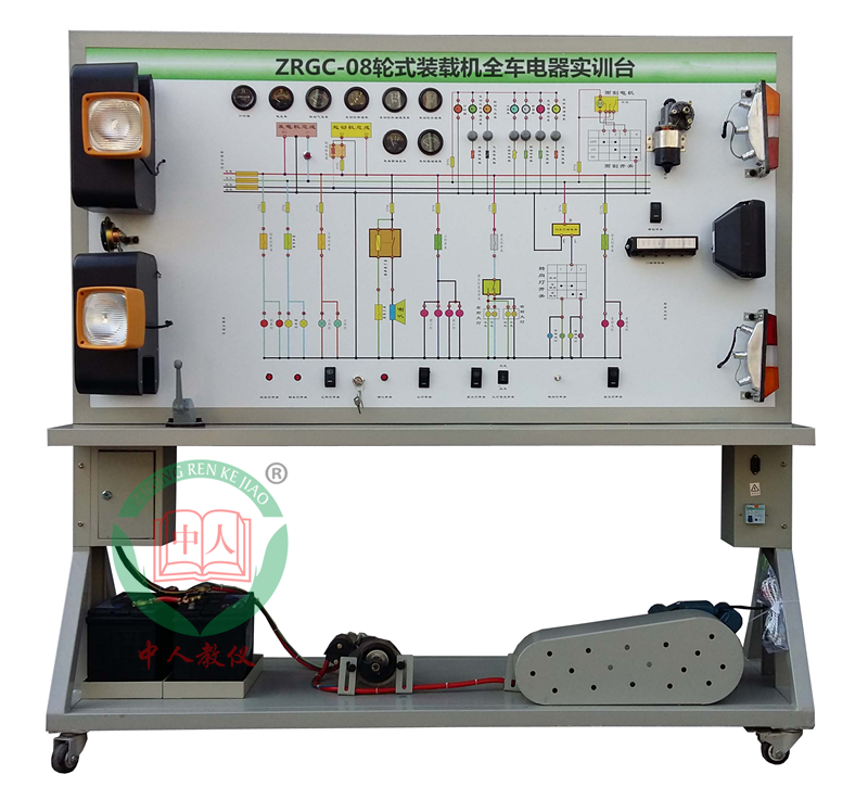 該設備采用ZC50輪式裝載機整車電器實物為基礎,充分展示儀表系統、燈光系統、雨刮系統、喇叭系統、發動機電器系統、起動系統和充電系統等電器各系統的組成結構和工作過程。