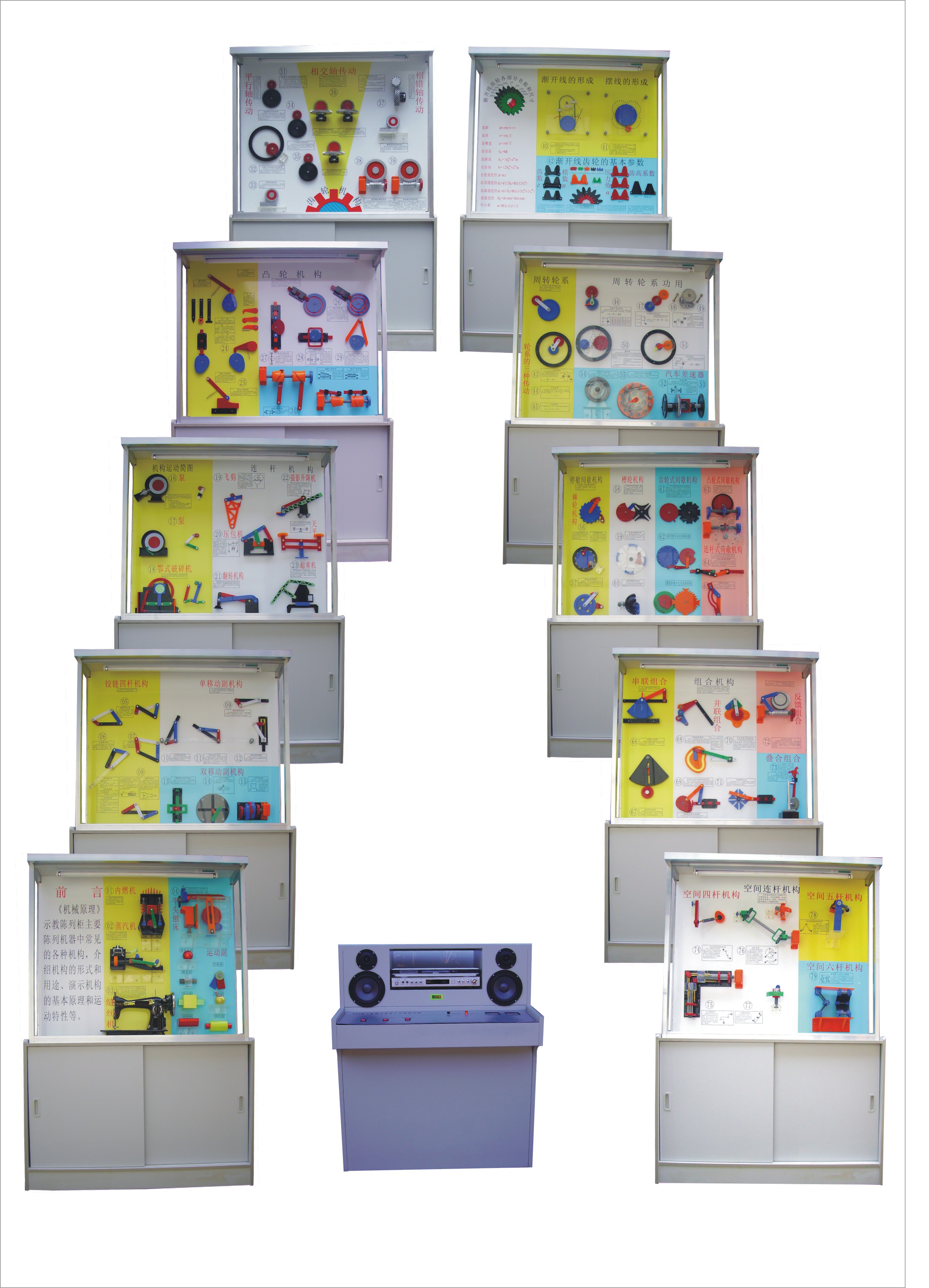機械原理陳列柜,機械原理示教柜是根據大、中專院校、技校、職業學校的機械原理教學大綱設計的電化教學設備。演示形象逼真,運行可靠,制作工藝美觀,使用本陳列柜可提高教學效果,節約學時是一套現代化機械課程教學應用實驗室設備。