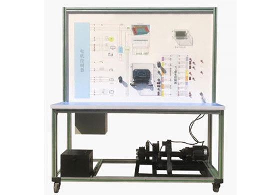 檢測控制面板(裝有各種檢測端子,1448×940mm彩色電路圖和工作原理示意圖)、儀表、點火開關、電機控制器、車載充電器與充電接口、DC-DC轉換器、鋰動力電池組、大電流繼電器、電動車電機、剎車開關、檔位開關、油門控制裝置、電源總開關、急停開關、輔助蓄電池(12V45AH)、一體化全鋁合金型材搭建的移動臺架(1500×700×1700mm帶自鎖腳輪裝置,帶安裝檢測端子的原理面板,面板1448×940mm)、設備操作說明書。