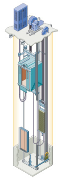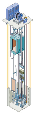 仿真電梯模型之有無齒輪電梯中的無齒輪電梯