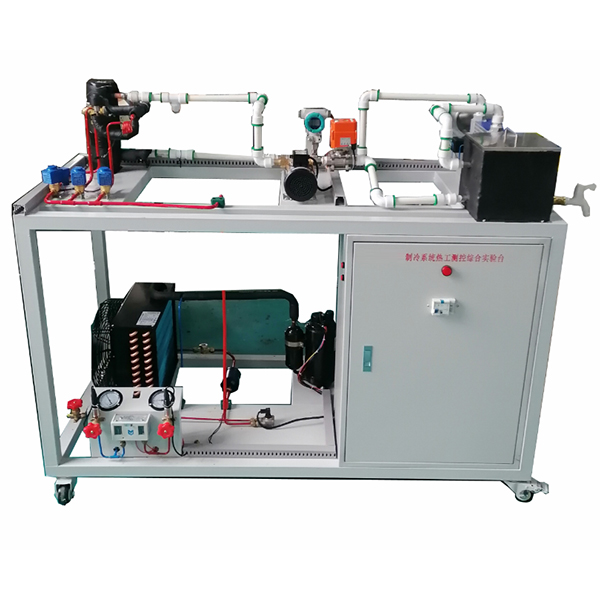 制冷系統熱工測控綜合實驗臺,制冷系統熱工測控實訓裝置采用蒸汽壓縮式制冷循環系統,配備全封閉式制冷壓縮機、冷凝器、蒸發器等制冷系統真實部件,并設有智能溫度調節儀、流量計、壓力表、電壓表、電流表等測量儀表。不但能開設制冷壓縮機性能參數的測定實訓,還能進行制冷循環基本原理的演示實訓。適用于職業院校制冷專業相關課程的教學實訓。