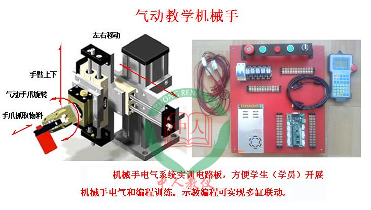 配氣泵,配機械手電氣系統實訓電路板(或含電柜),方便學生(學員)開展機械手電氣和編程訓練。