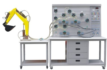 2、透明挖掘機液壓試驗臺可模擬真實挖掘機工作裝置的各種動作。液壓系統采用進口透明機玻璃液壓元件、透明尼龍軟管搭接而成,液壓元件結構、工作原理,液壓回路工作原理一目了然。整個實驗臺具有形象、直觀、方便、可靠等優點。
