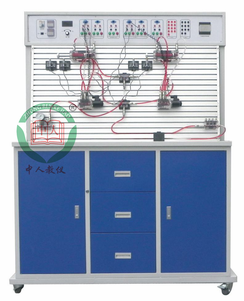 2、實訓桌、實訓臺為鐵質雙層亞光密紋噴塑結構,實訓桌柜內存放液壓元件等。