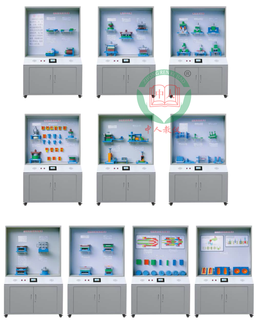 本公司力求實用根據學校教學要求需要、特制一套《冷沖壓與塑料成型工藝及模具設計》與《塑料成型模具》等教材設計而成的模具示教陳列柜,這套陳列柜共分十個柜, 具有多功能語音播放控制系統。