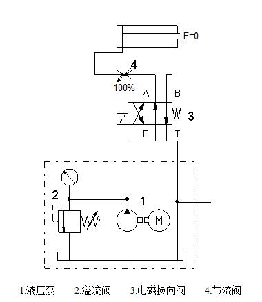 3、依照回路圖,確認安裝和連接正確;放松溢流閥、啟動泵、調節溢流閥的壓力,調節單向節流閥開口大小。