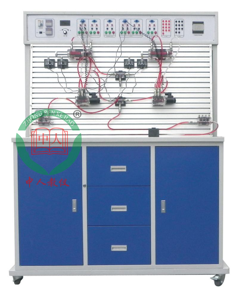 2、實訓桌、實訓臺為鐵質雙層亞光密紋噴塑結構,實訓桌柜內存放液壓元件等。