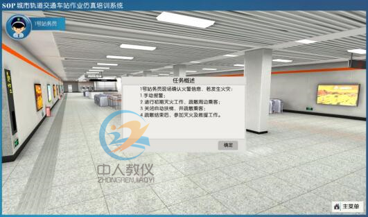 系統利用計算機仿真技術和三維仿真技術,構建三維虛擬的城市軌道交通車站環境和崗位角色,可由受訓人員扮演各類城市軌道交通車站的站長、值班員、站務員、票務員等崗位進行車站非正常情況下應急處置作業教學、實訓與考核。