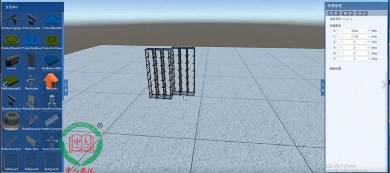 1.3、無需編程,面向三維圖形,通過鼠標拖拽三維元件,簡單快捷地部署工業應用場景并測試運行。