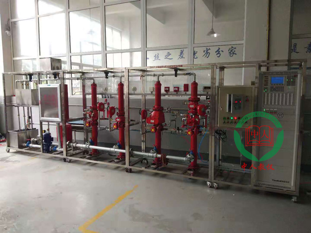2)自動噴水滅火系統與消火栓系統共用低位消防水箱與屋頂消防水箱,并由消防水泵、穩壓增壓設備,氣泵、濕式報警閥,干式報警閥,雨淋報警閥,預作用報警閥,水流指示器,噴頭,末端試水裝置組成完整的自動噴水滅火系統,可以演示濕式自動噴水、干式、雨淋、預作用滅火系統的組成與工作原理。