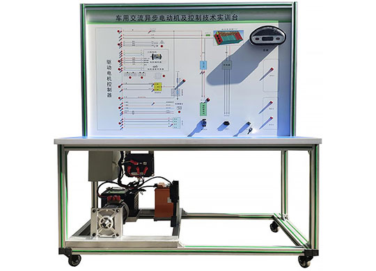 檢測控制面板(裝有各種檢測端子,1448×940mm彩色電路圖和工作原理示意圖)、組合儀表、點火開關、電機控制器、車載充電器與充電接口、DC-DC轉換器、鋰動力電池組、電動車電機(48V1KW直流無刷電機、48V1KW開關磁阻電機、48V1KW輪轂電機、60V2KW交流異步電動機、60V2KW交流永磁同步電機各1套 )、剎車開關、檔位開關、油門控制裝置、大電流繼電器、電源總開關、急停開關、輔助蓄電池(12V45AH)、一體化全鋁合金型材搭建的移動臺架(1500×700×1700mm (帶自鎖腳輪裝置,帶安裝檢測端子的原理面板,面板1448×940mm)、設備操作說明書。