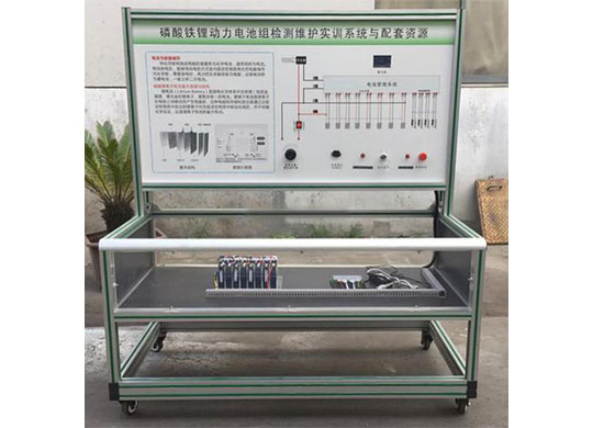 磷酸鐵鋰 動(dòng)力電池包及BMS總成、BMS信息顯示液晶屏(2.3*9.3cm)、電池管理系統(tǒng)(BMS)APP軟件、緊急斷電開關(guān)、維修開關(guān)、電流與溫度傳感器,直流接觸器,放電線性負(fù)載,充電器、一體化全鋁合金型材搭建的移動(dòng)臺(tái)架(700*500*1500mm 帶自鎖腳輪裝置,帶安裝檢測(cè)端子的原理面板,面板648*713mm)、實(shí)驗(yàn)插接導(dǎo)線、設(shè)備操作說(shuō)明書。