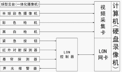b.可實現(xiàn)閉路電視監(jiān)控系統(tǒng)的圖像捕捉、圖像傳輸、聯(lián)動控制、圖像處理、圖像記錄等功能,先進監(jiān)控設(shè)備:視頻采集卡、監(jiān)視器、多種類型的攝像機以及LON控制器等, 整個系統(tǒng)監(jiān)控與防盜一體,因而具有較大的實用意義。