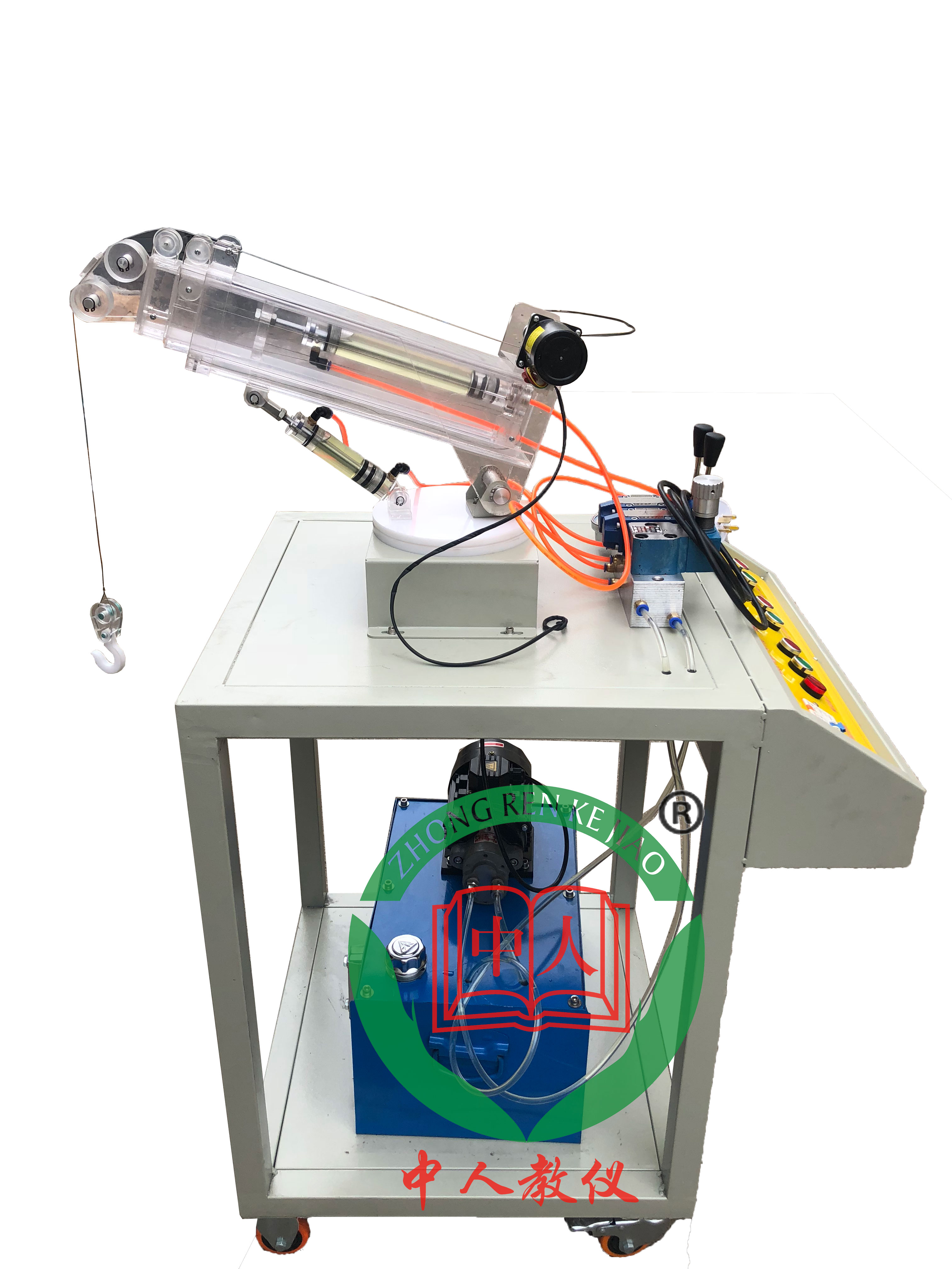 1、實訓機按實物比例縮小,采用透明材料制作伸縮臂 ,主臂為二級,液壓缸驅動.