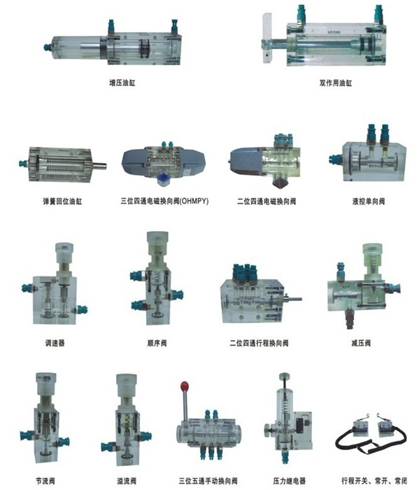 為了盡快的適應各個領域的發展,培養出大量的掌握液壓傳動基礎知識和實際操作技能的技術工人、技術員、工程師、輸送到社會主義建設的各條戰線。我公司根據《液壓傳動》、《液壓原理》、《機械基礎》、等教材內容要求和國內液壓元件特點,參考國外先進技術,經過多年的努力探索,我們以理論為依據,以實驗為手段,采用高精密度加工工藝,克服了透明有機塑料具有熱塑性,容易變形,機械強度差,而液壓元件表面光潔度,結構精度要求高的一系列實際困難,最終研制成功ZRTYY型透明液壓傳動演示系統。它填補了國家技術、中專、大專院校的液壓傳動通用教學設備的空白。